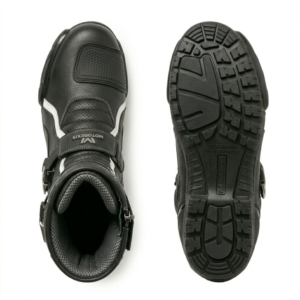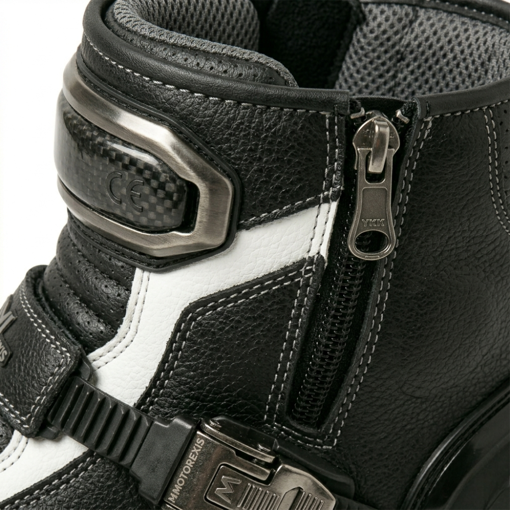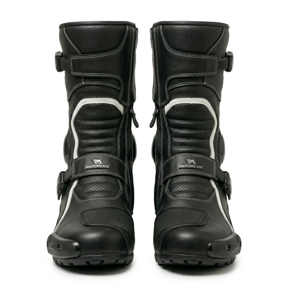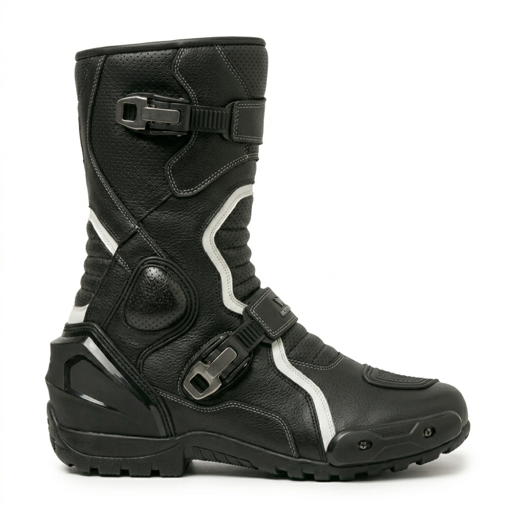 Crafted from 100% Full-Grain Genuine Cowhide Leather, these boots deliver superior abrasion resistance and natural durability that no synthetic boot can match. The striking black and white colorway perfectly complements any racing suit or riding gear.