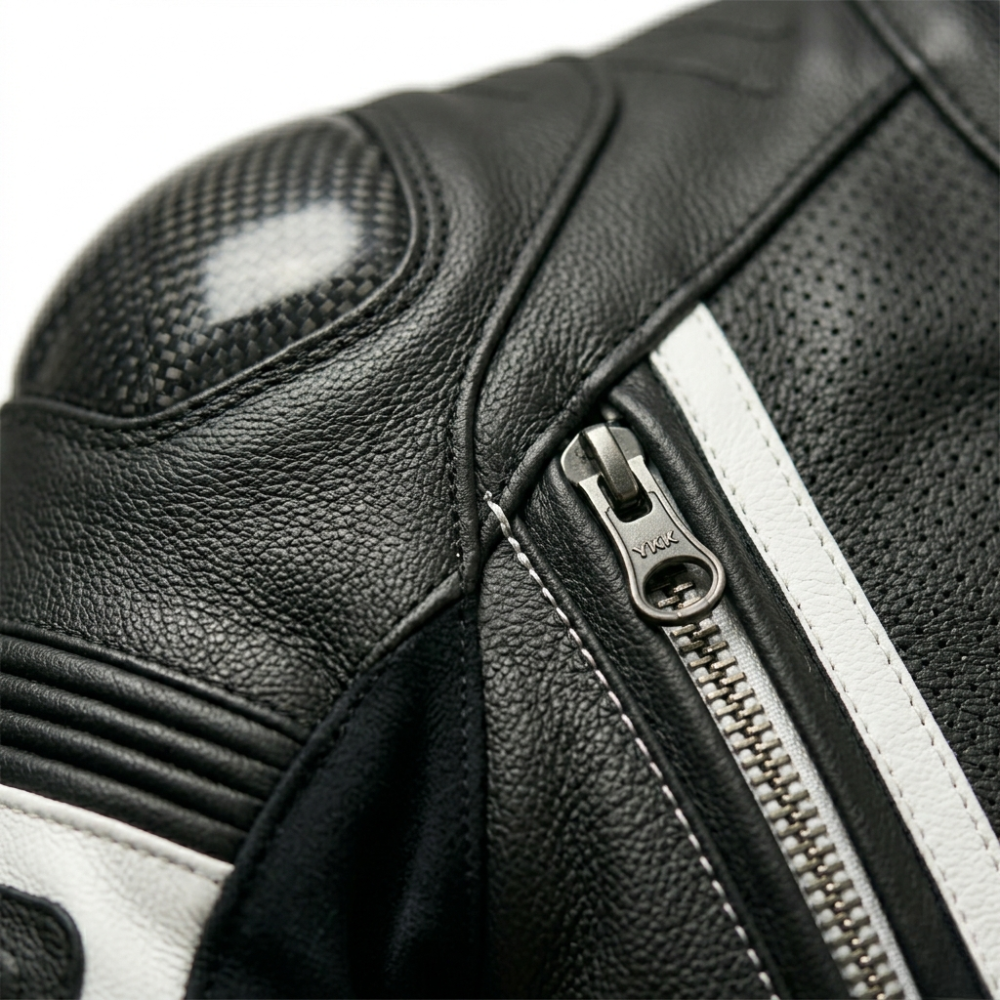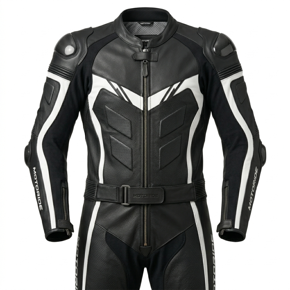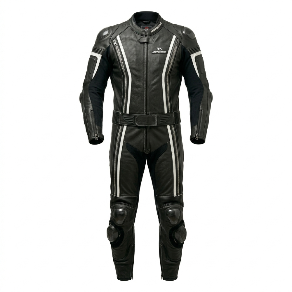 Crafted from 100% Full-Grain Genuine Cowhide Leather, this suit offers unmatched abrasion resistance, natural flexibility, and long-lasting durability. The bold black and white colorway turns heads at every corner — on and off the track.