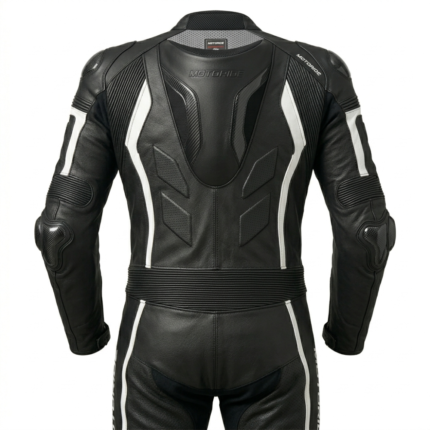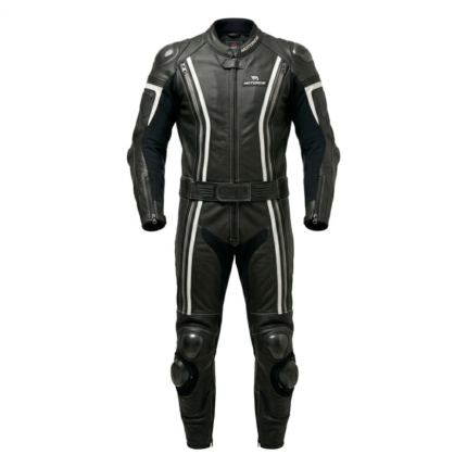 Men’s Black & White One Piece Motorbike Leather Suit – 100% Genuine Cowhide | Leathiques